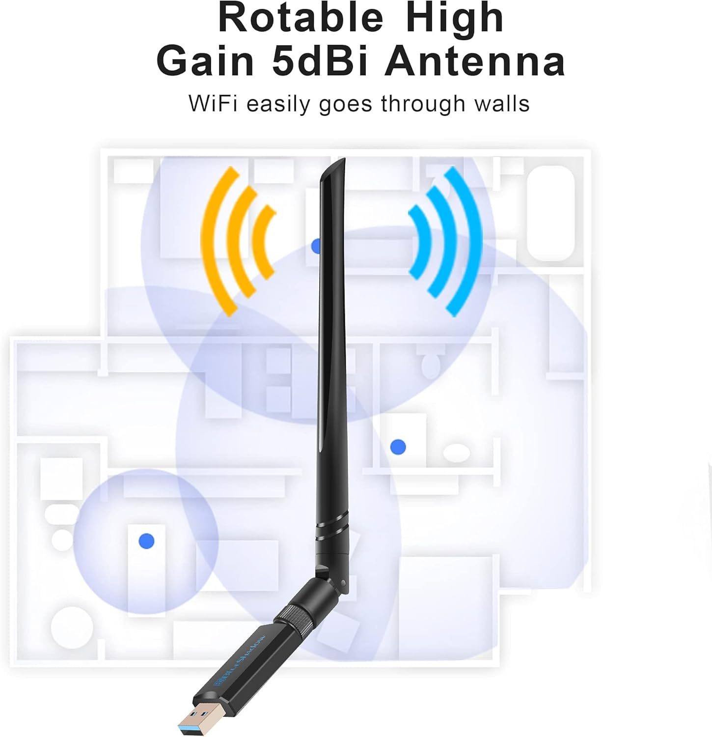 • ULTIMATE USB WIRELESS NETWORK ADAPTER RANGE: Our usb wifi adapter for pc comes with 2 pieces of long-range Wi-Fi antennas of 5dBi, it ensures the extended range Wi-Fi connection and superior stability on desktop, laptop, PC and other devices. 5dBi antenna greatly enhance the reception and transmission signal strength.