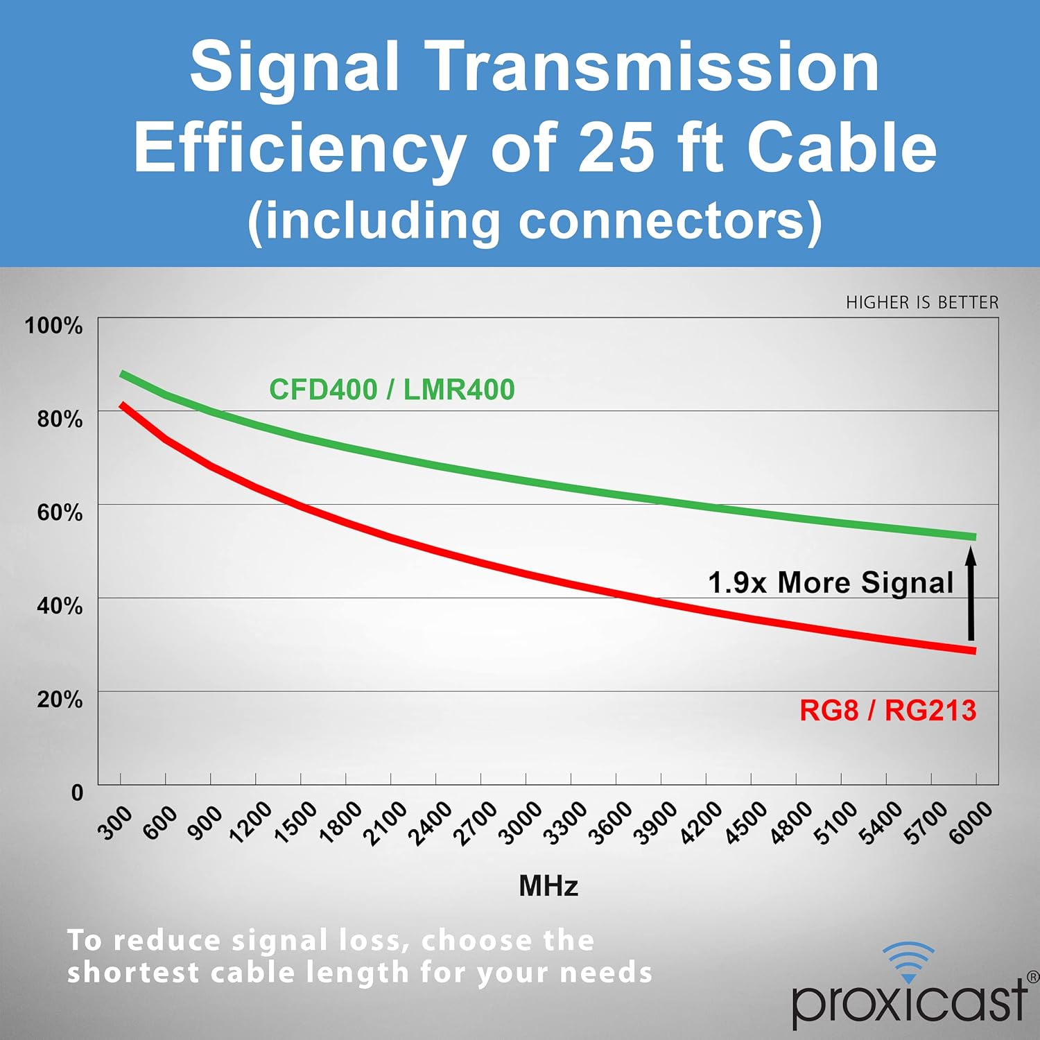 Proxicast 50 ft SMA Male to N Male Premium 400 Series Low-Loss Coax Cable (50 Ohm) for 4G LTE, 5G Modems/Routers, Ham, ADS-B, GPS to Antenna or Surge Arrester Use (Not for TV or WiFi) (ANT-140-020-50)