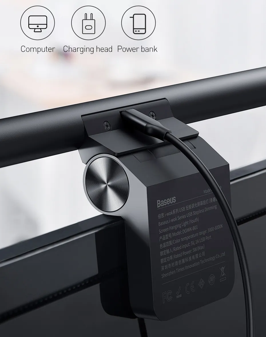 Baseus Stepless Dimming Eye-Care LED Desk Lamp For Computer PC Monitor Screen Hanging Light LED Reading USB Powered Lamp