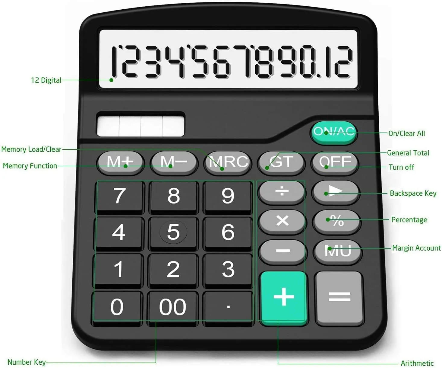 wholesale Calculator, 2 Pack Standard Functional Desktop Calculators Solar and AA Battery Dual Power Electronic Office Calculators