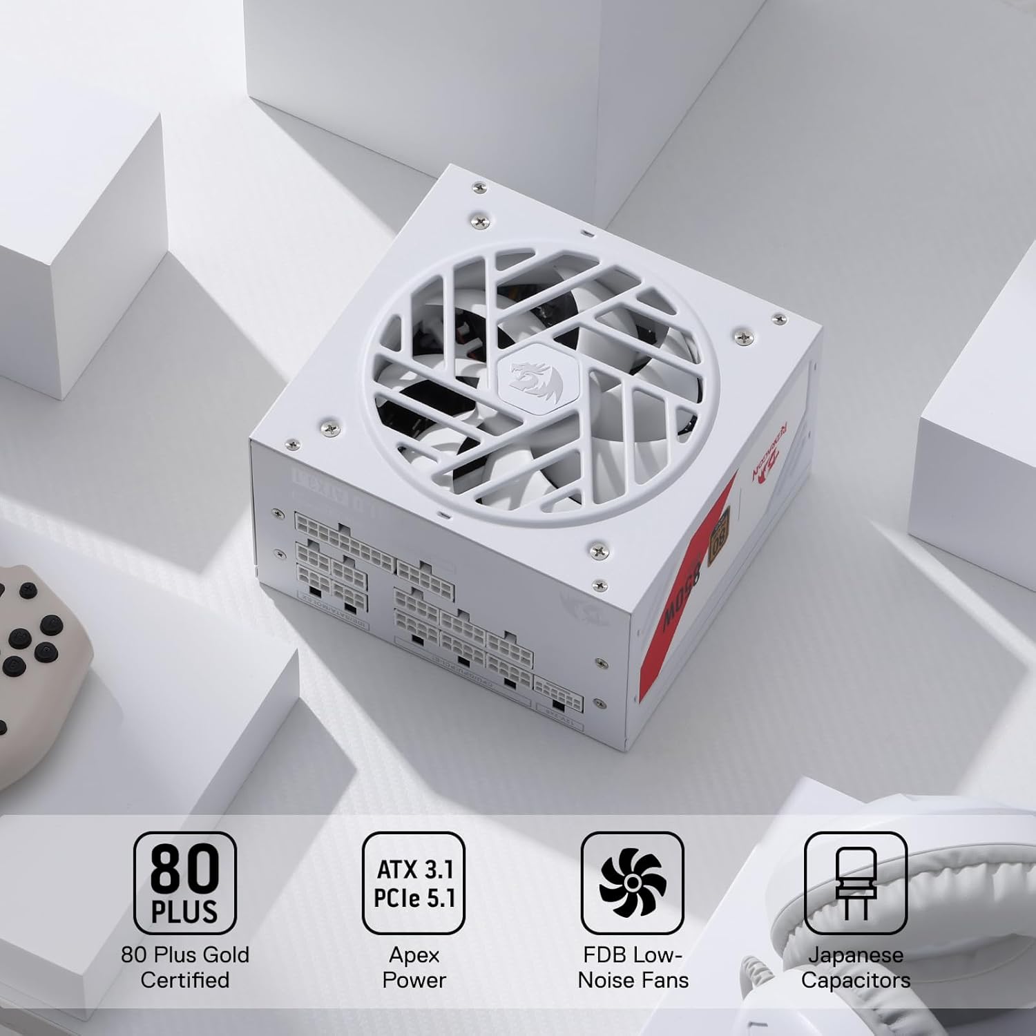 Redragon RGPS-850W 80 Gold 850 Watt ATX 3.0 & PCIe 5.0 Fully Modular Power Supply w/ 80 Plus Gold Certified, Compact 160mm Size, Smart ECO Low Noise RGB Fan, 100% Japanese Capacitors, Full Mod Cables