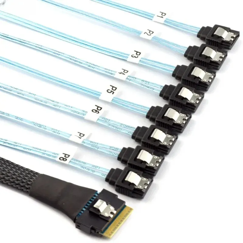 new PCI-E Slimline SAS SFF-8654 8I To 8X SATA Straight Head Server Hard Disk Conversion Cableto 8X SATA Cable for PCI-E Slimline SAS