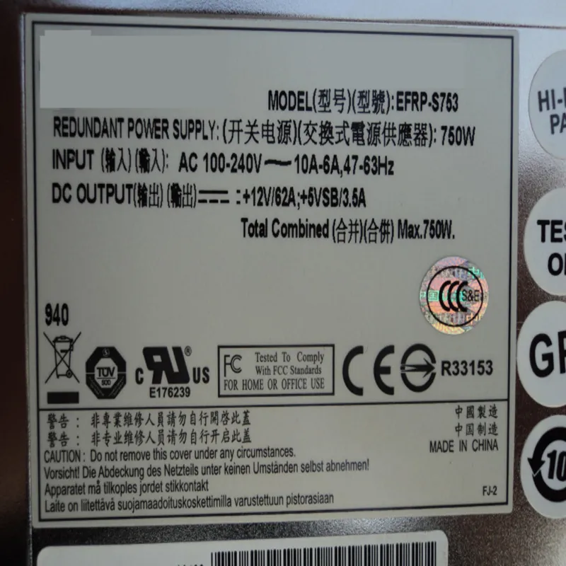 Computer Power Supplies PSU For Etasis A620r-G 750W Switching EFRP-S753