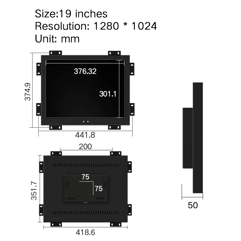 19 Inch Display HDMI VGA DVI LCD Screen Monitor of Tablet Not Touch Screen Industrial Computer Monitor 1280*1024