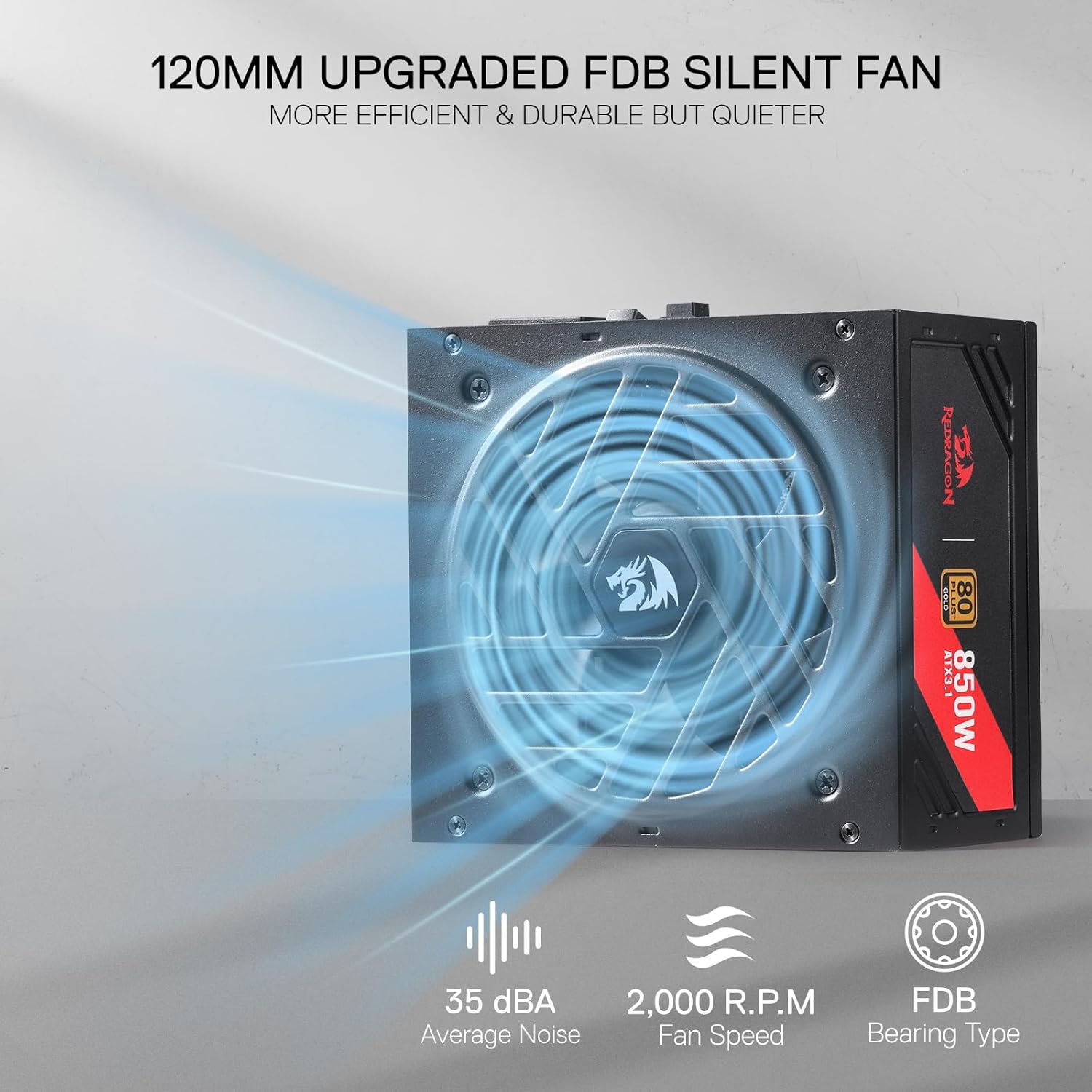 Redragon RGPS-850W 80 Gold 850 Watt ATX 3.0 & PCIe 5.0 Fully Modular Power Supply w/ 80 Plus Gold Certified, Compact 160mm Size, Smart ECO Low Noise RGB Fan, 100% Japanese Capacitors, Full Mod Cables