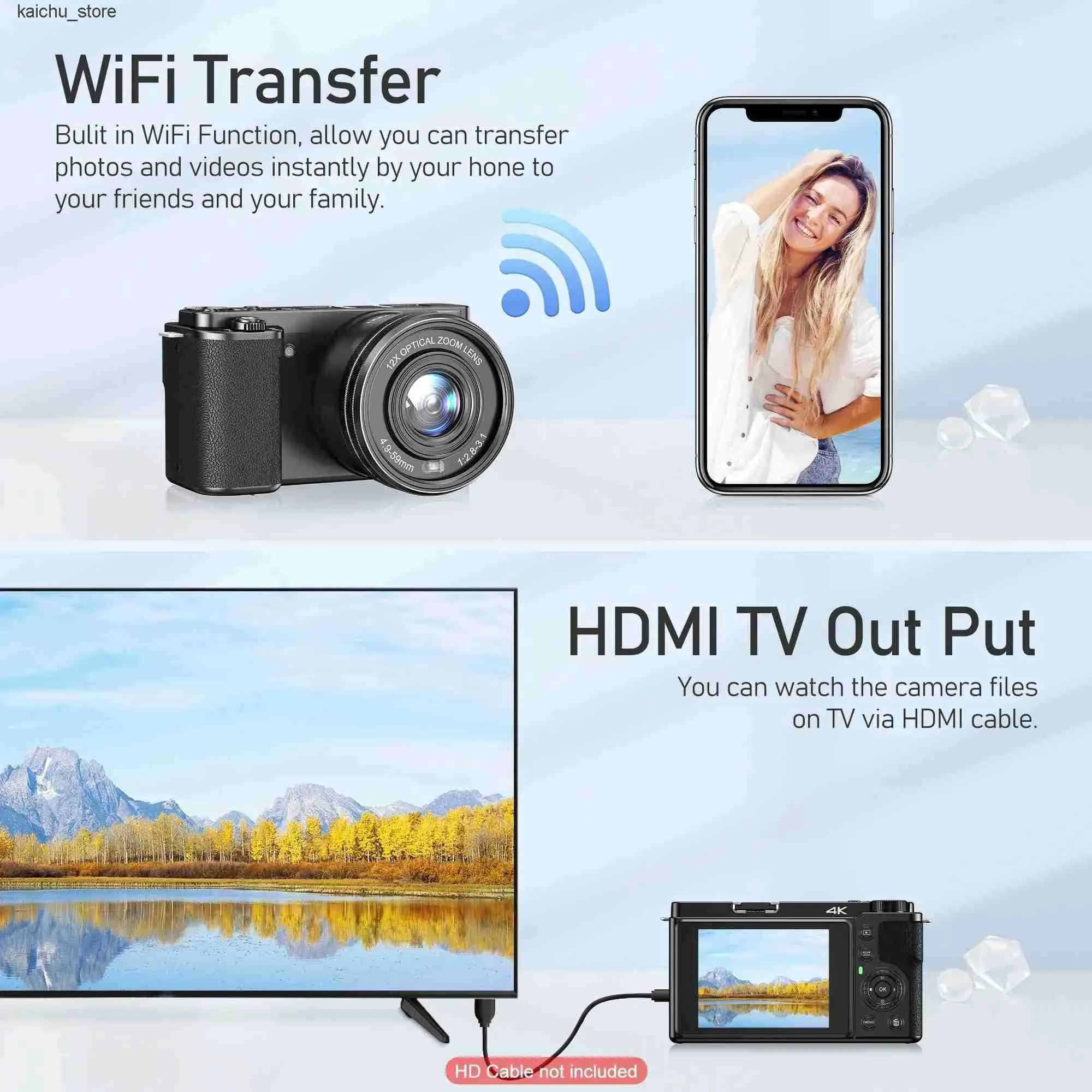 4K Digital Cameras Photography 12X Optical Zoom Auto Focus DSLR 64MP WiFi Livestream Vlog Video Camera for YouTube J241213