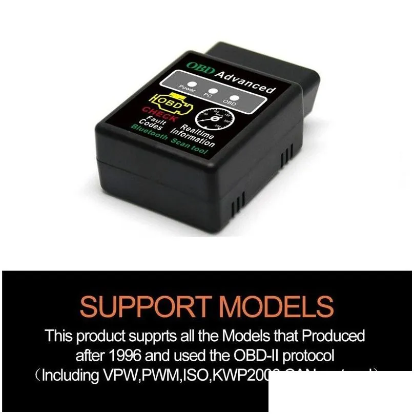 Diagnostic Tools Bluetooth Car Scanner Tool Obd Elm327 V2.1 Advanced Mobdii Obd2 Adapter Bus Check Engine Diagnostic Code Reader Drop Dhrq2