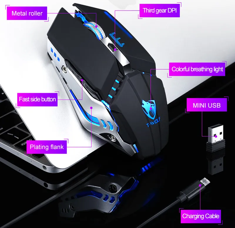 hot Q15 charging mute wireless mouse notebook computer peripherals office games USB mouse mice free shipping