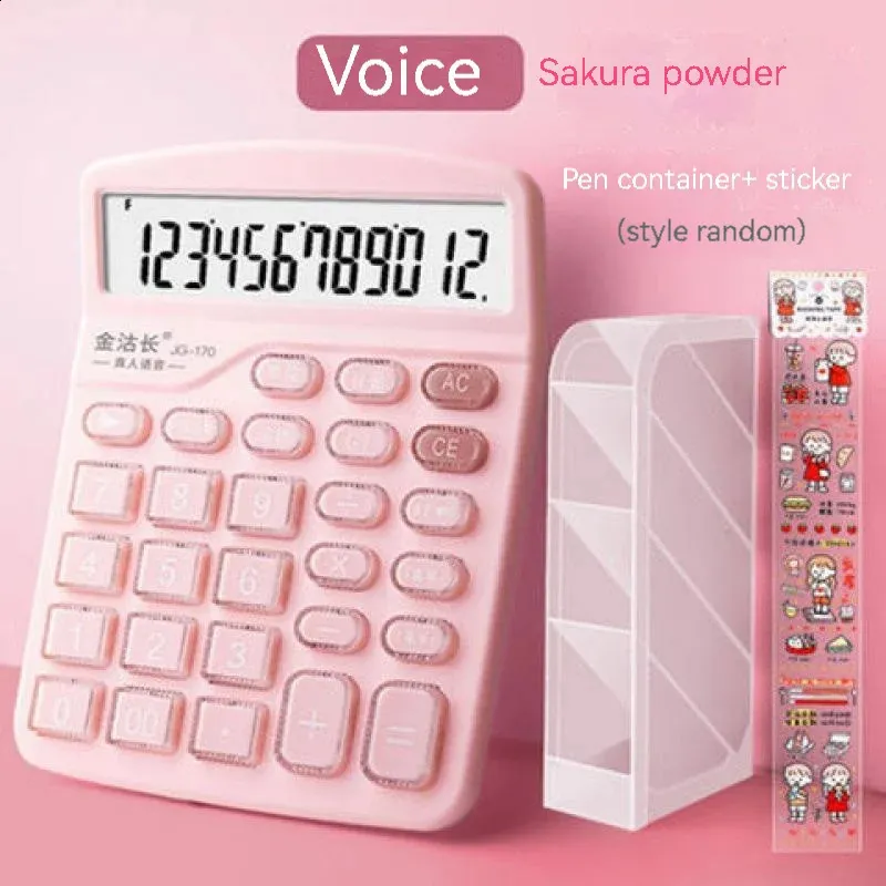 wholesale Cute Girl Heart Have Voice Calculator Office Supplies 12 Digits Electronic Dual Power Calculator Accounting Special Computer 240826