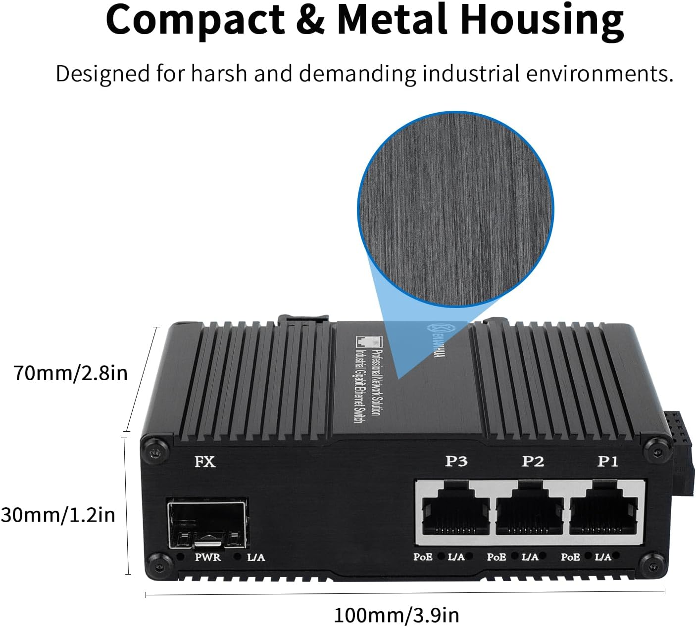 • 【Plug and Play】 It don't need any configuration, fanless design, quiet operation, suitable for intelligent transportation, rail transit, electric power, mining, metallurgy and green energy and other industrial scenarios which needs Ethernet access.