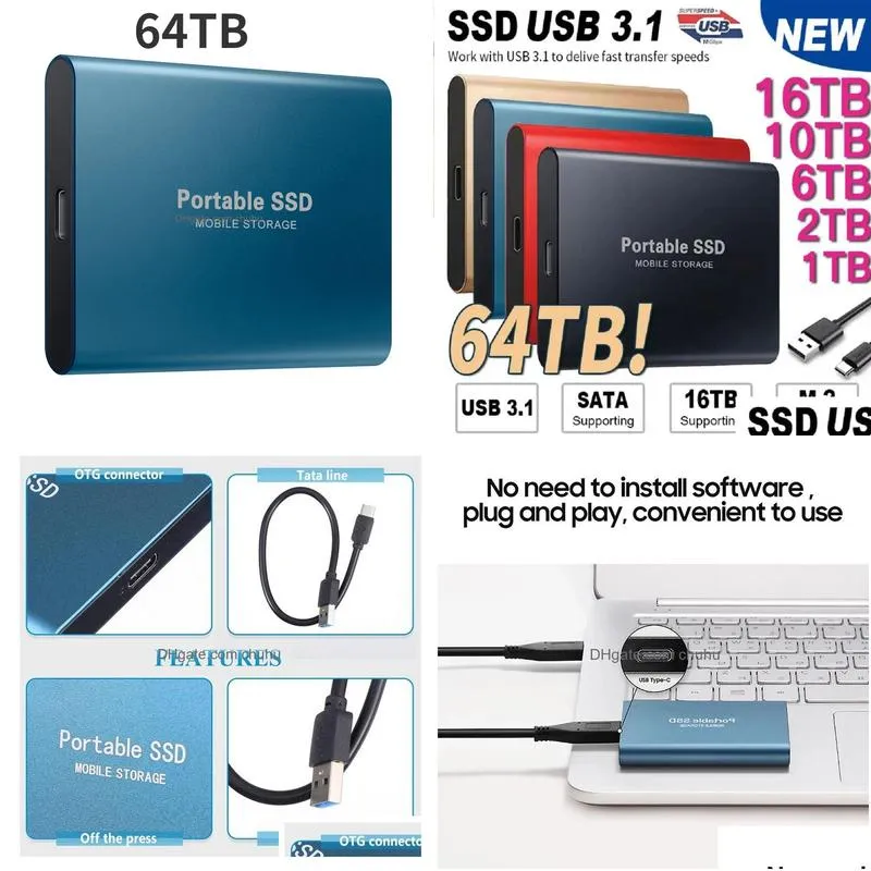 Internal Solid State Disksssd Portable Ssd 1Tb External Hard Drive High-Speed Mobile 500Gb Storage Decives Disks For Pc/ Drop Delivery Otzzx