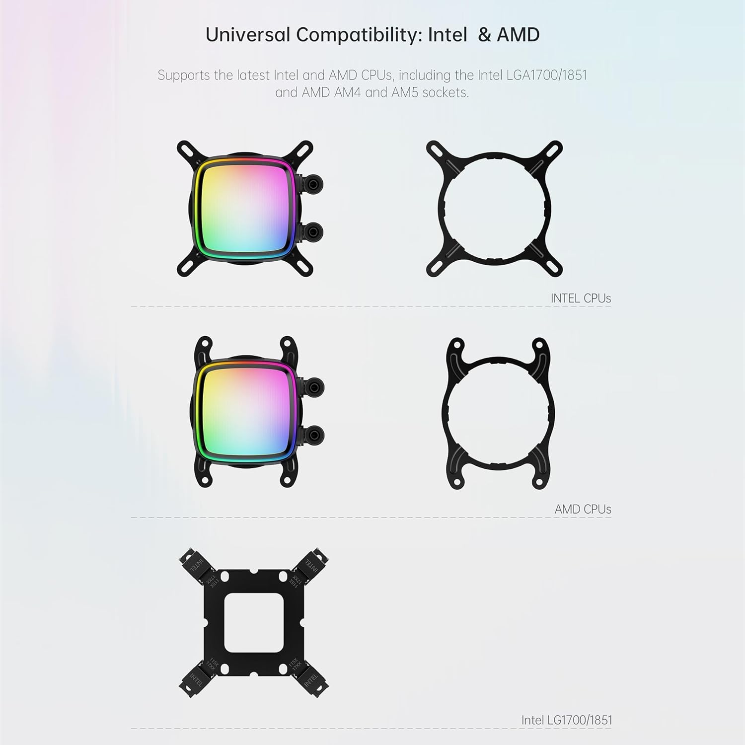 Eskimo Pro - 420mm AIO CPU Liquid Water Cooler- RGB PWM Squama 2503W 140mm Fan x 3- Fit Intel® LGA 1700, AMD®AM5 - White- (GEO-EP-42W)