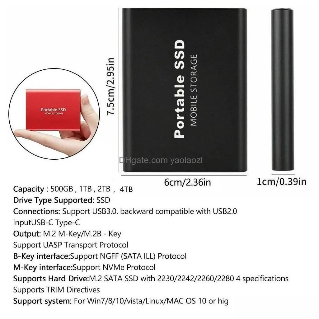 Hard Drives M.2 Ssd 500Gb 1Tb Flash Drive External Typec High Speed Usb3.1 2Tb 4Tb 8Tb Storage Portable Hd Disk For Laptop 221105 Dr Dhqb5