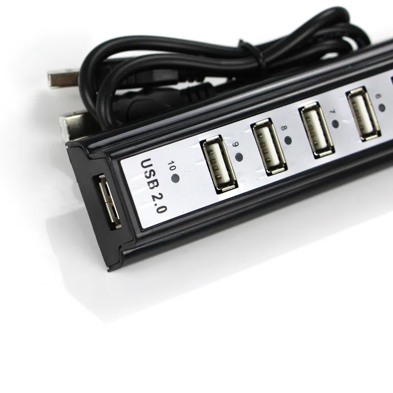 10 Ports USB Hub 480Mbps High Speed USB 2.0 Hubs with Power Supply Adapter Computer Peripherals for PC Laptop Notebook