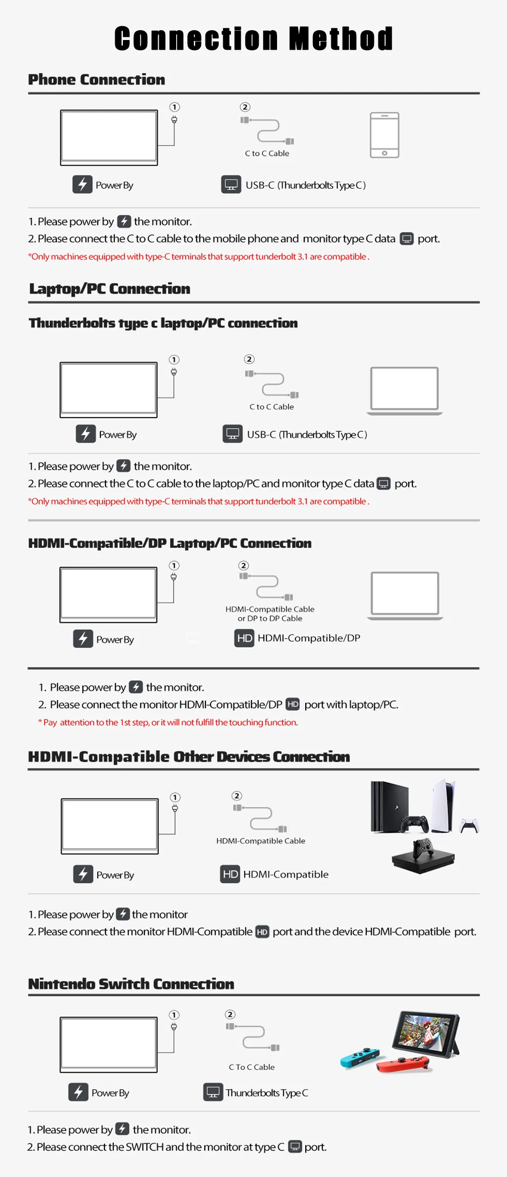 Multi-interface: USB2.0 OTG Support/ Type-C 1/ Type-C 2/ Headphone Jack/ HDMI-compatible