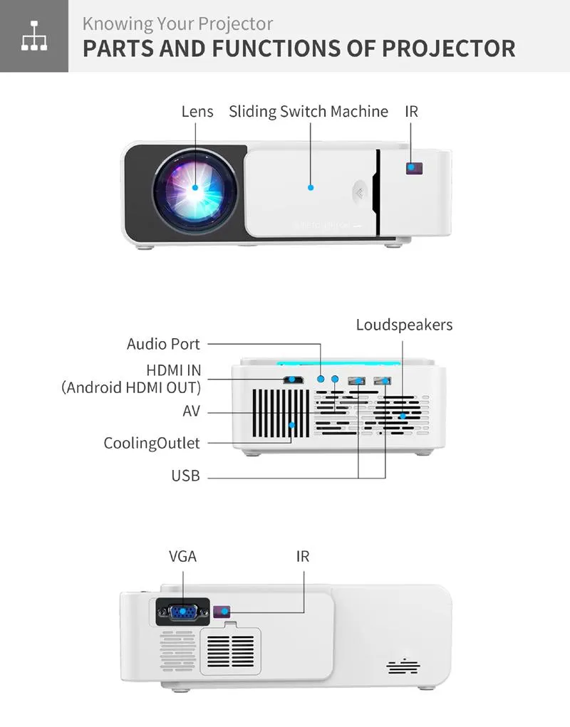 A visual experience for parties, home cinema, video games, and more! Portable and easy to carry. A plastic cover protects the lens.