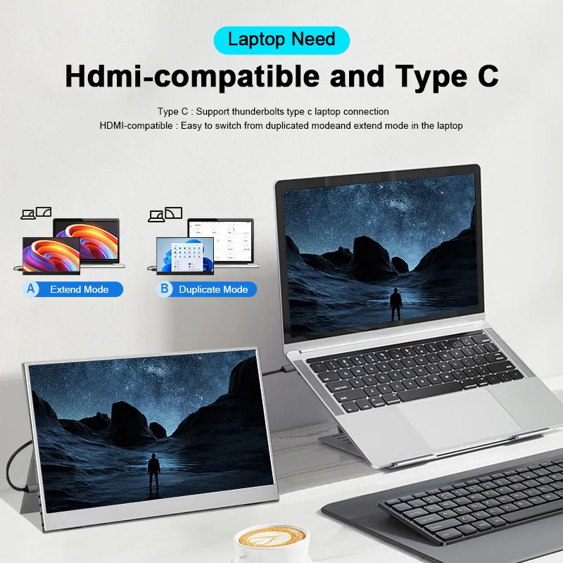 A: Normally all the laptops have HDMI-compatible or DP port for the extend screen connection. So just use the HDMI-compatible connection to our monitor is ok. DP to HDMI-compatible OTG will also help.