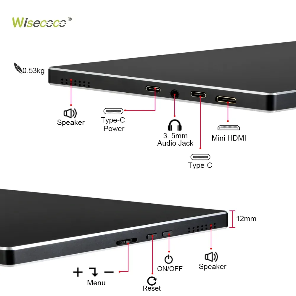 Wisecoco 9" 2.5K 16:10 Portable Monitor 2560*1600 16:10 100%sRGB IPS Touch LCD Monitor for Macbook Air Laptop PS4 Raspberry Pi
