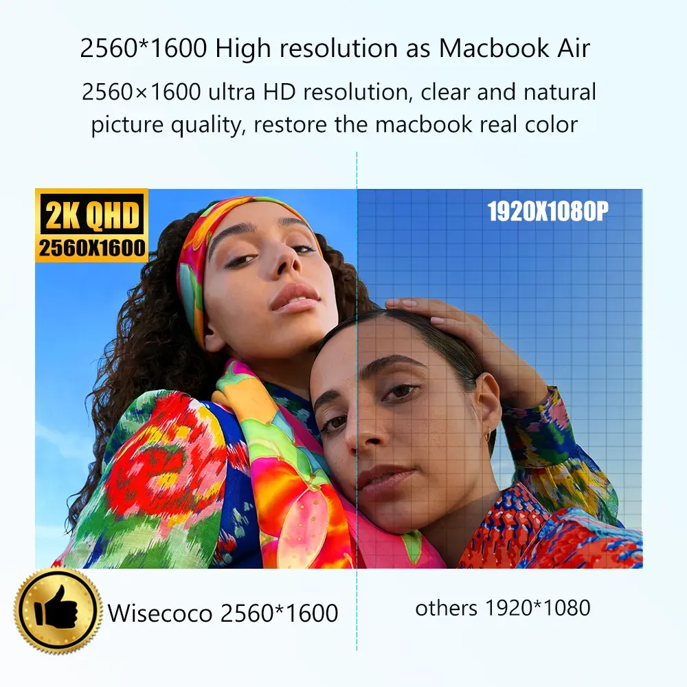 Perfect with macbook air--- Wisecoco 8.9 inch portable monitor for macbook, The same 2560*1660 high resolution as the macbook, no need to adjust when connecting your macbook, 1:1 restore ratio, 100% full screen, enjoy a visual feast