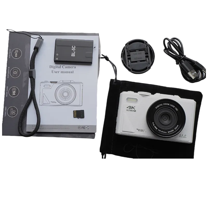 4K Digital Camera 18X Digital Zoom 64MP Compact Cameras 3'' 180° Flip Screen with Flash WiFi for Photography Vlogging YouTube Vintage Video Recorder Selfile SLR DSLR