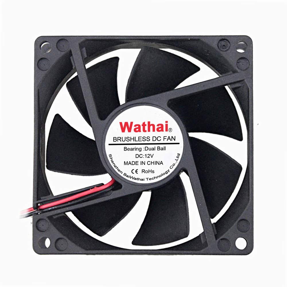 Wathai 80mm x 25mm 12 Volt Fans DC Brushless Cooling Fan 12V Dual Ball 2Pin for DIY Small Project Cooler 2 Pack
