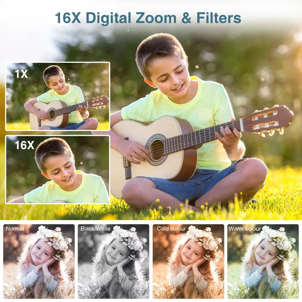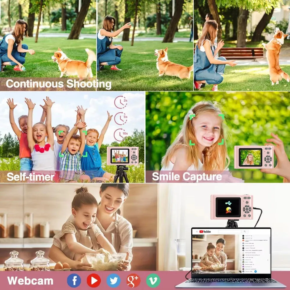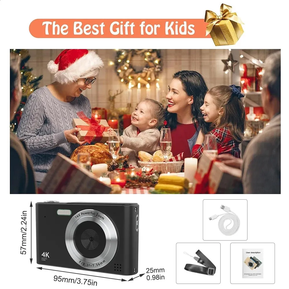 HD 24 inches 1080P digital Camera Rechargeable Cameras with 16x Zoom Compact 44MP for kids Girls camera digit 241116