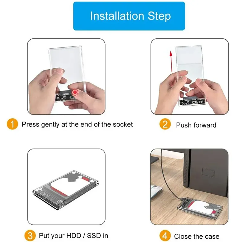 2.5 inch Plastic Transparent HDD SSD Case SATA III to USB 3.0 Hard Drive Disk Enclosure for Laptop Notebook PC