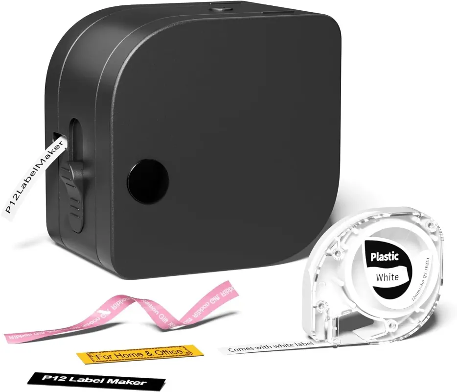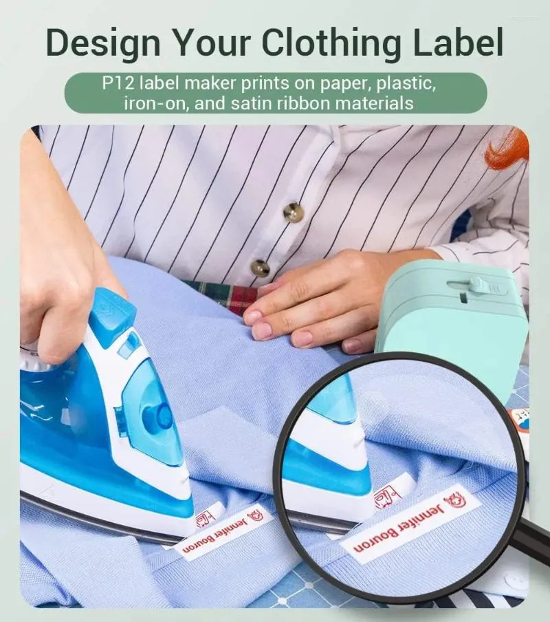 【Prints on P12 Label Maker Tape】This bluetooth label maker prints on the P12 label tape, which is available in a wide range of colours and materials. Not only are self-adhesive label paper and plastic labels in various colours, but also sation ribbons for decoration and fabric iron-on labels for clothing.