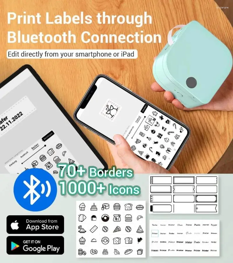 【Bluetooth Connectivity】Bluetooth connection via the Print Master app to start designing and printing labels anytime, anywhere. The app offers 12 fonts, 62 borders and 1096 symbol stickers, giving you a easy and efficient label printing experience. The portable bluetooth label printer supports 1-3 lines of text. Minimum 2mm white space of the label to reduce waste.