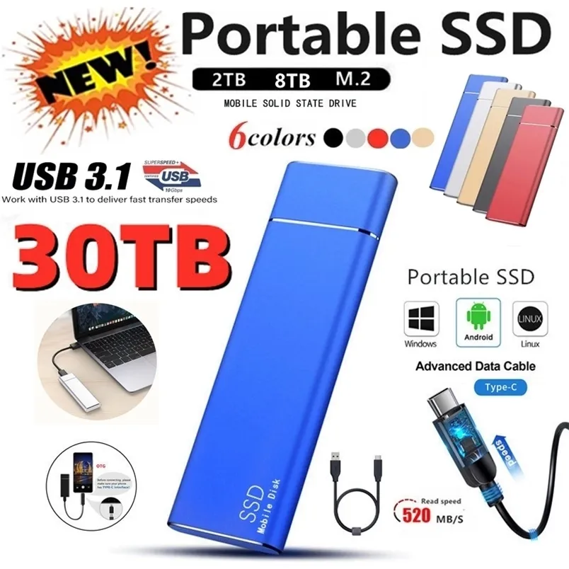 SSD High Speed Mobile Solid State Drive 30TB 25TB 20TB 16TB Type-C USB 3.1 Portable External Storage Flash Memory Hard Disk