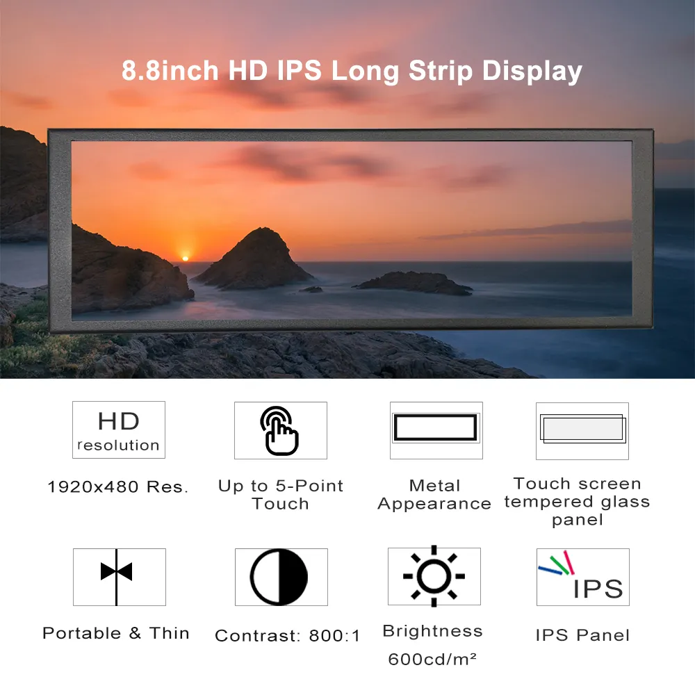 8.8inch 7.9inch Wide Lcd Screen Monitor with Stand Small Strip Hdmi Gpu Cpu Bar 480x1920 Touch Display for Raspberry Pi Computer