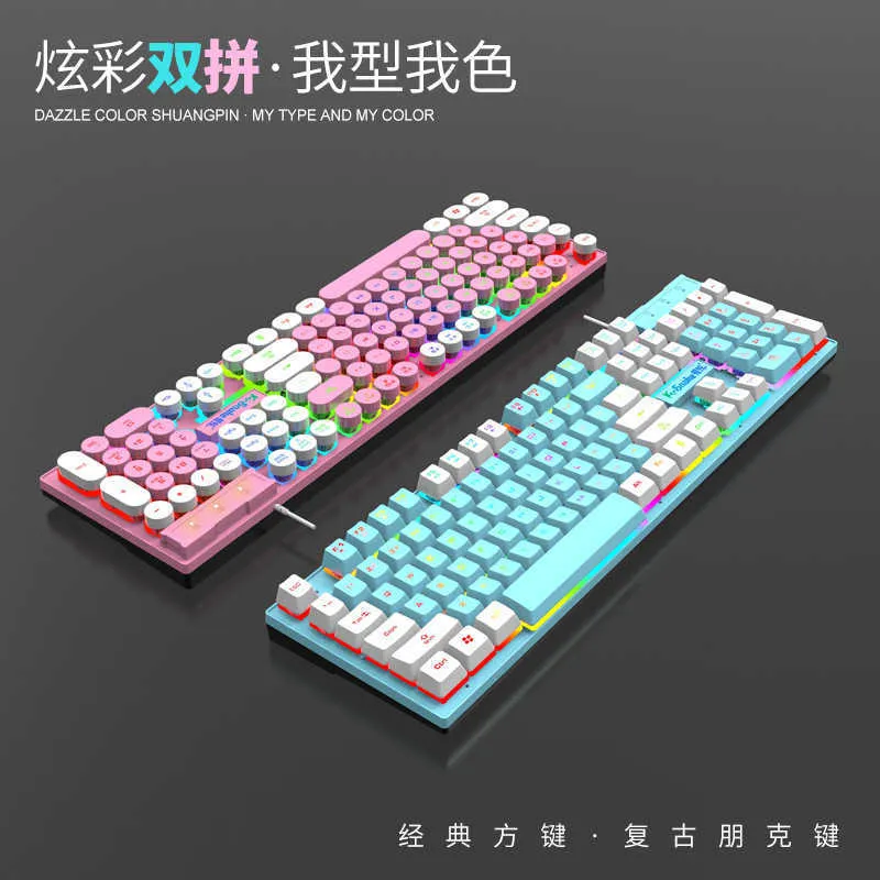Keyboards Viper K4 Game Wired Keyboard Punk Double Color Light up Mechanical Touch Computer Business Keyboard Peripheral S25210