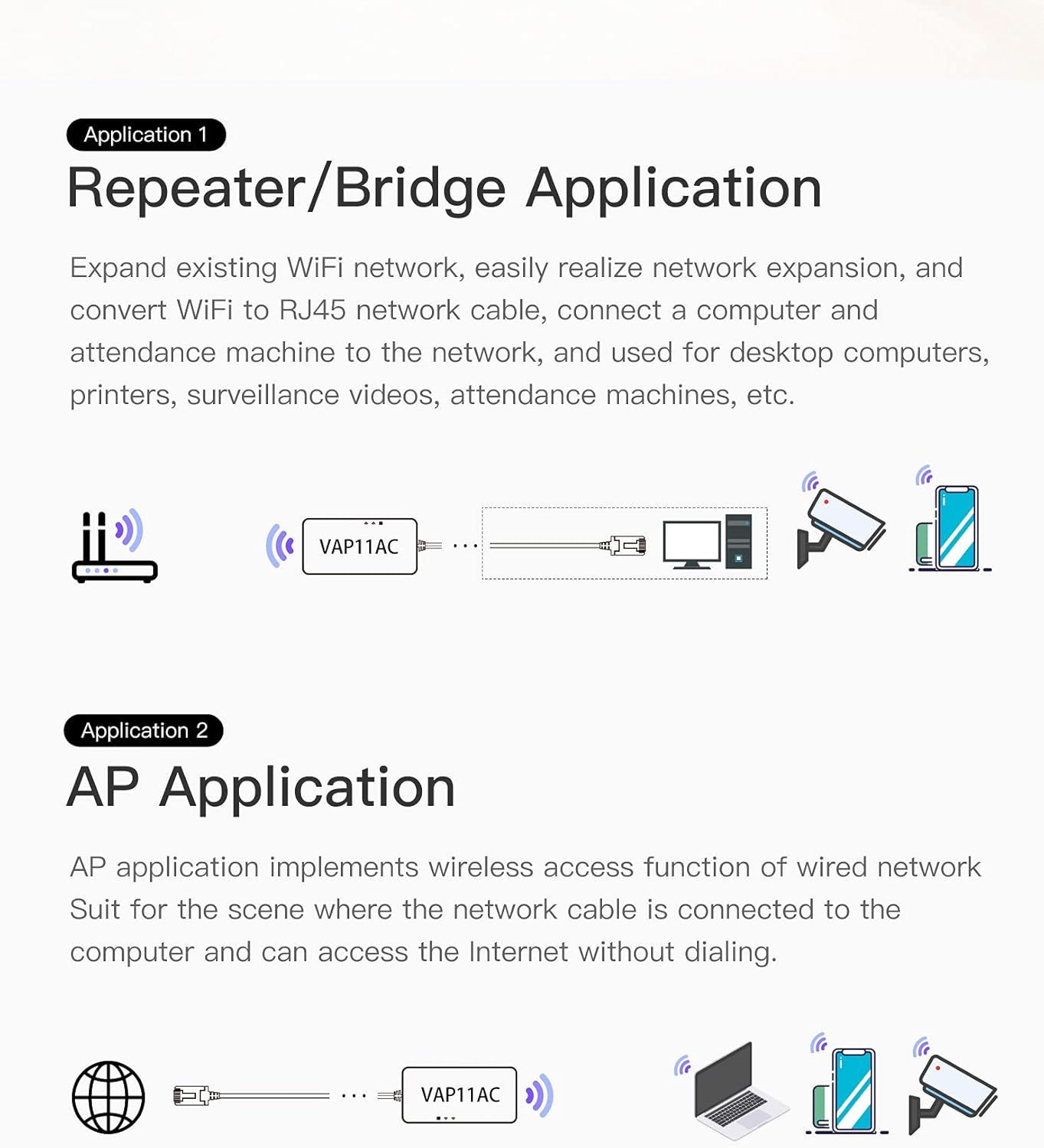 Vonets VAP11AC 2.4G 5G WiFi Bridge/Wireless Repeater/Wired to WiFi Adapter 1200Mbps with RJ45 Ethernet Cable Good Partner for Security System, IP Device