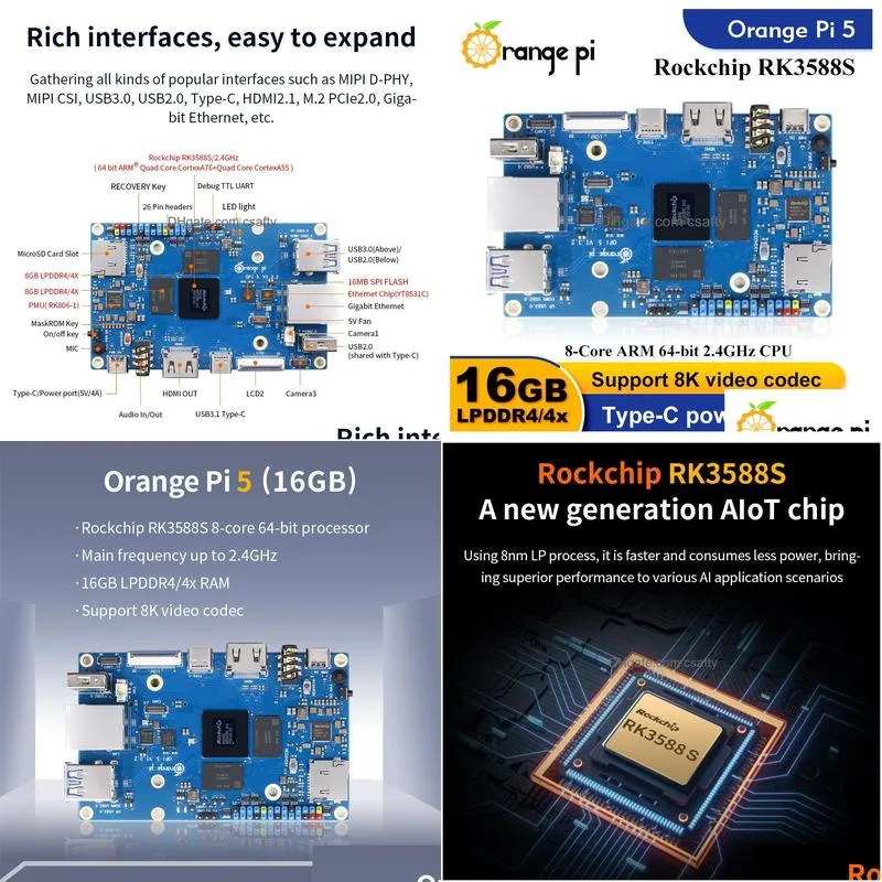 Other Computer Components Orange Pi 5 16Gb Ram Single Board Uter Rk3588S Pcie Mode External Wifiaddbt Ssd 8K Pi5 Development Run Andro Otgfq
