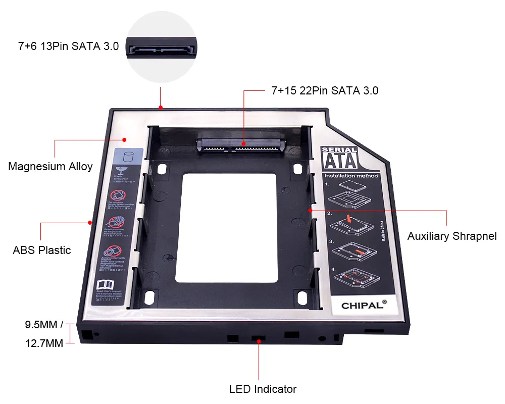 CHIPAL Universal SATA 3.0 LED 2nd HDD Caddy 9.5mm 12.7mm for 2.5" 2TB SSD Case Hard Disk Enclosure for Laptop CD-ROM DVD-ROMCHIPAL Universal SATA 3.0 LED 2nd HDD Caddy 9.5mm 12.7mm for 2.5" 2TB SSD Case Hard Disk Enclosure for Laptop CD-ROM DVD-ROMCHIPAL Universal SATA 3.0 LED 2nd HDD Caddy 9.5mm 12.7mm for 2.5" 2TB SSD Case Hard Disk Enclosure for Laptop CD-ROM DVD-ROM