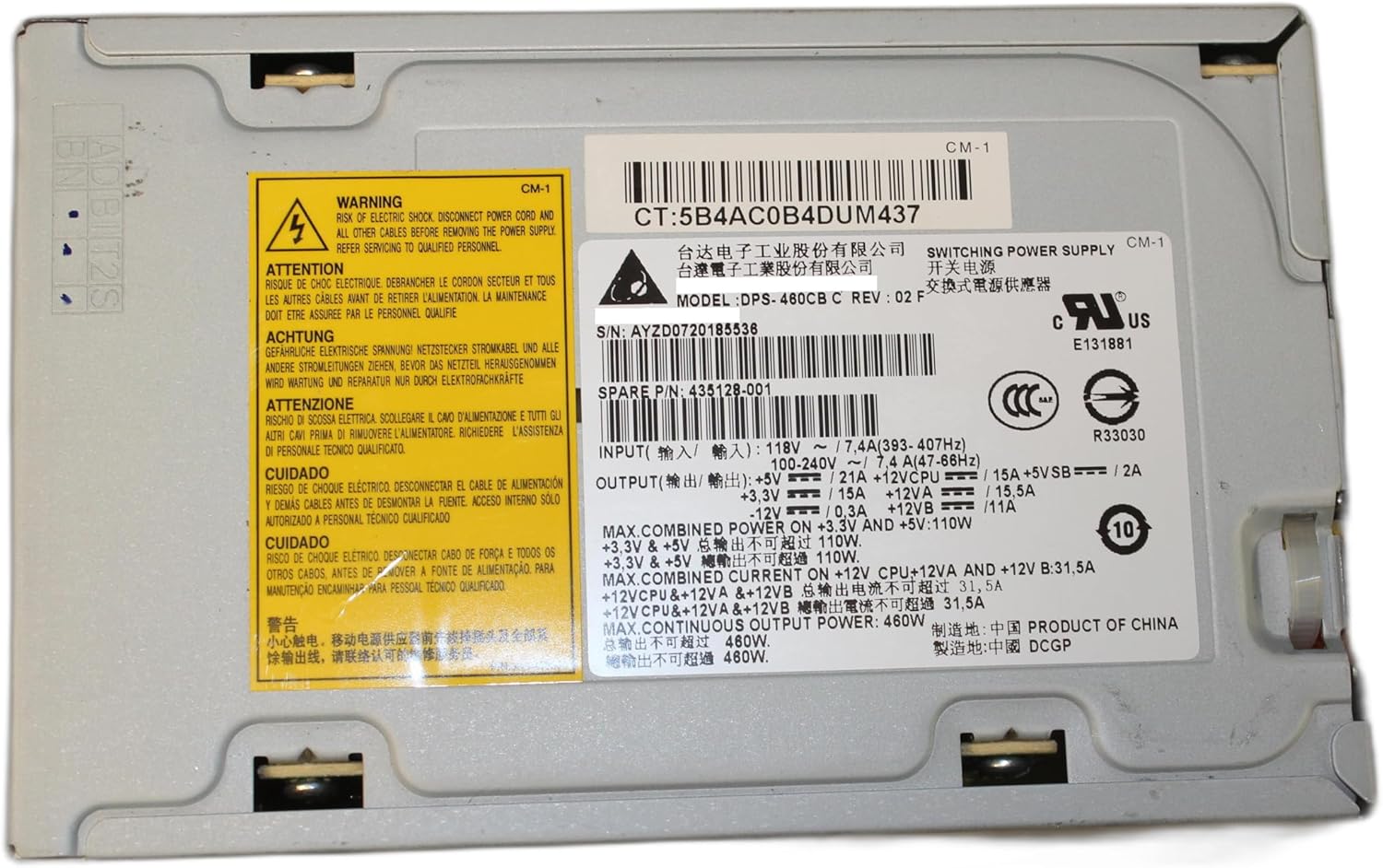 HP Workstation XW4400 460W PSU - 435128-001