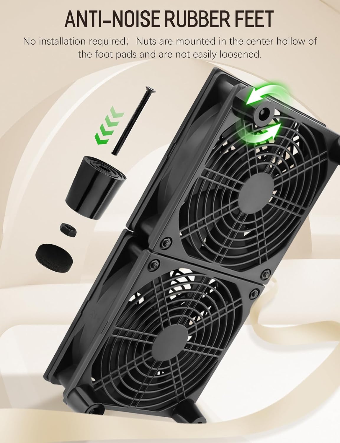 • NON-SLIP RUBBER FEET: The 120mm case fan is equipped with anti-slip pads that not only dampen noise and minimize sound emissions but also effectively curb vibration and prevent the unit from moving. It is designed with an upward airflow orientation as standard