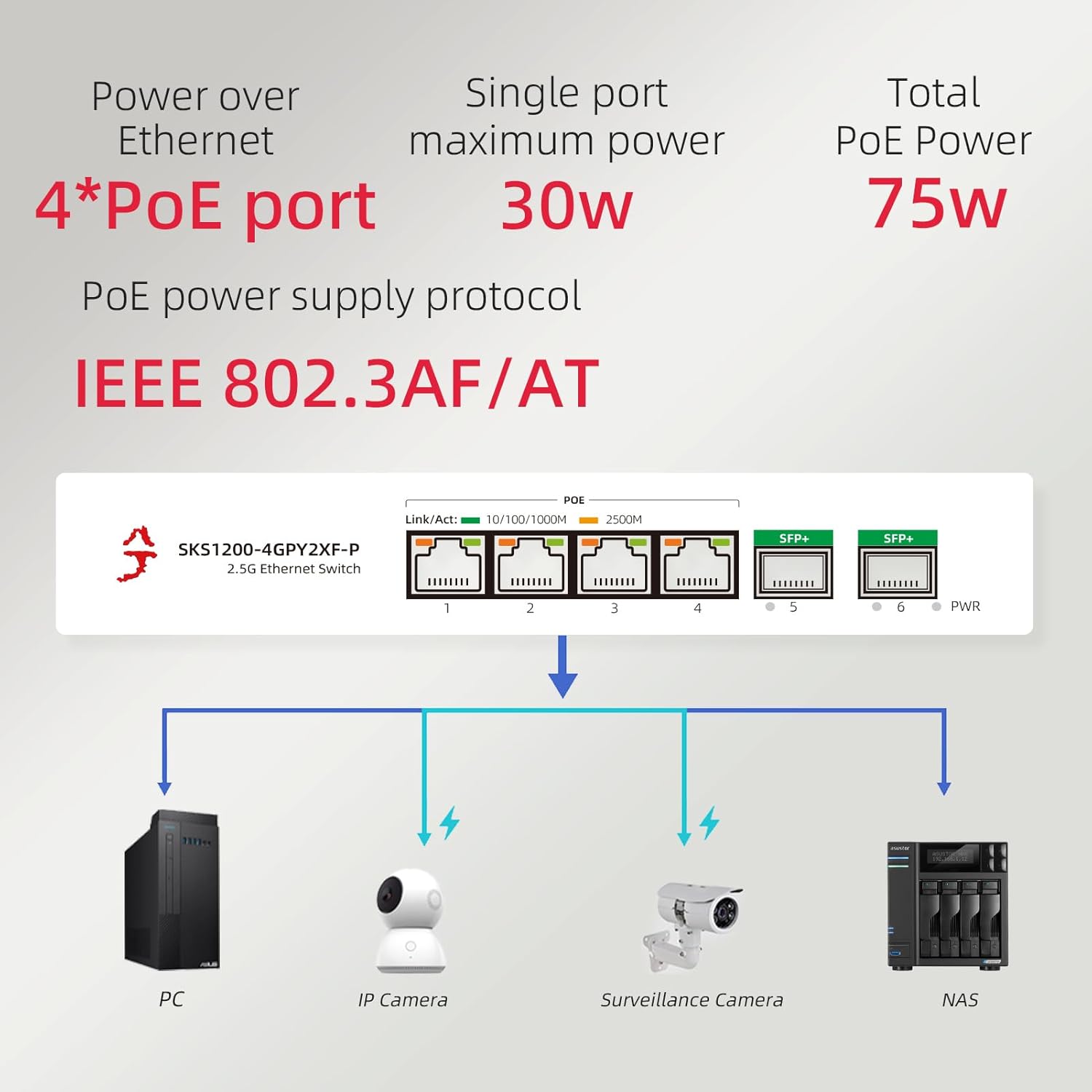 • Efficient Power Distribution and Versatility: With 75W total PoE power, the switch efficiently powers up to six devices without needing separate adapters. Perfect for NAS, IP cameras, and access points, the combination with the 10G module makes this bundle versatile for both powering and fast data transfer in one solution.