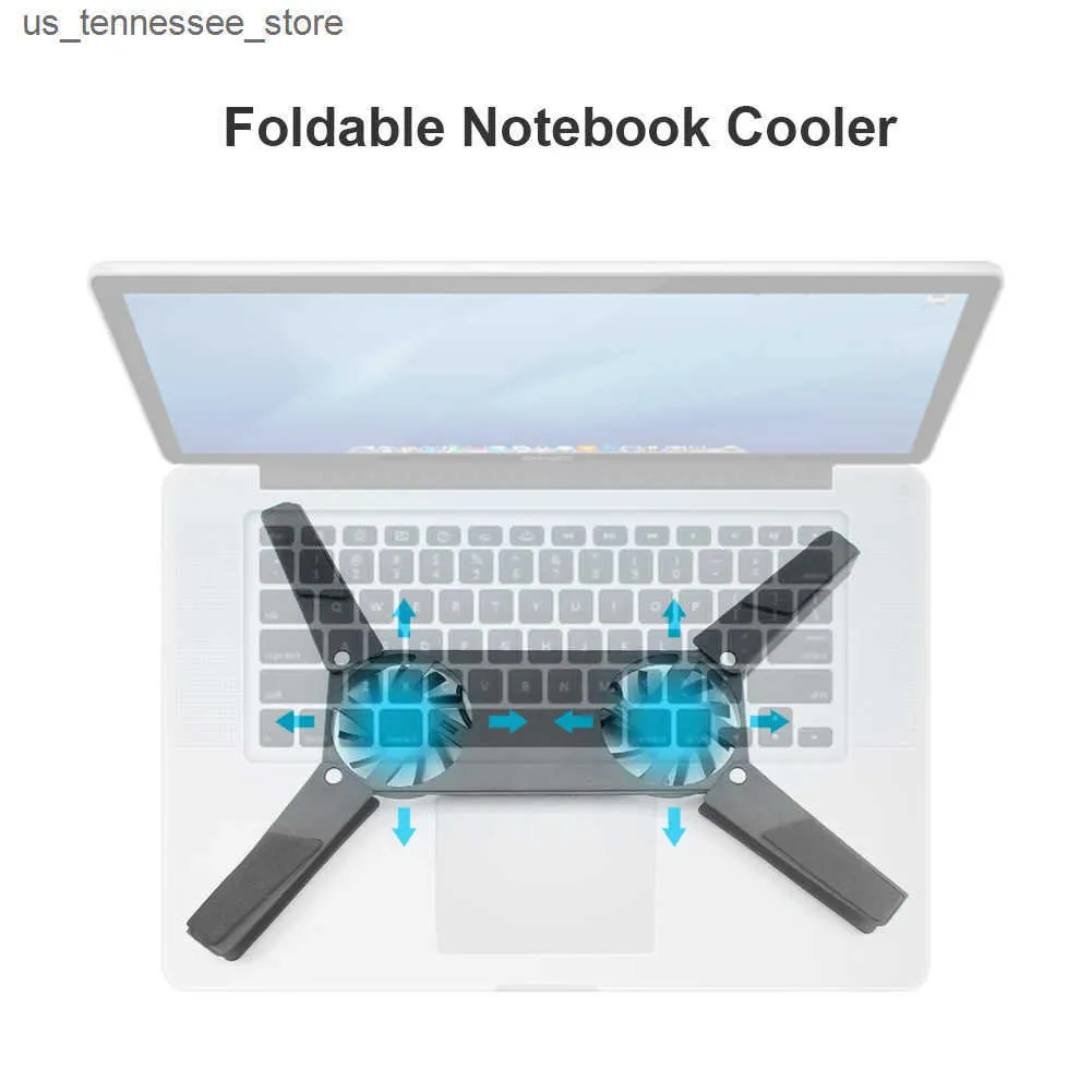 Laptop Cooler with 2 Fans USB Powered Foldable Cooling Pad for Notebook PC Computer Feature: 1. Ultra-small size, foldable deisgn, does not take up space and the shape can be adjusted randomly. 2. Stylish and lightweight design, stable operation; with two 60mm fans, large air volume, can effectively help the notebook computer drive heat dissipation. 3. Middle alloy material, the four legs are high-grade engineering ABS plastic, the black plastic protection pad prevents slipping, the sturdy structure can withstand various weights and help the computer heat dissipation, effectively protecting the notebook from being scratched. 4. USB powered, plug and play, without any other equipment. 5. Easy to use, stable and reliable, easy to carry, suitable for all kinds of notebook computers. Specification: Cooling method: fan Number of fans: 2 Material: ABS plastic Size: (length x width x height): folded 17x6.5x2.2cm/6.69x2.56x0.87", unfolded 27x18x2.2cm/10.6x7.08x0.87" Product weight: 90g Colour: Black Note: 1. There may be slight size deviations due to manual measurement, different measuring methods and tools. 2. The picture may not reflect the actual color of the item because of different photographing light, angle and display monitor.
