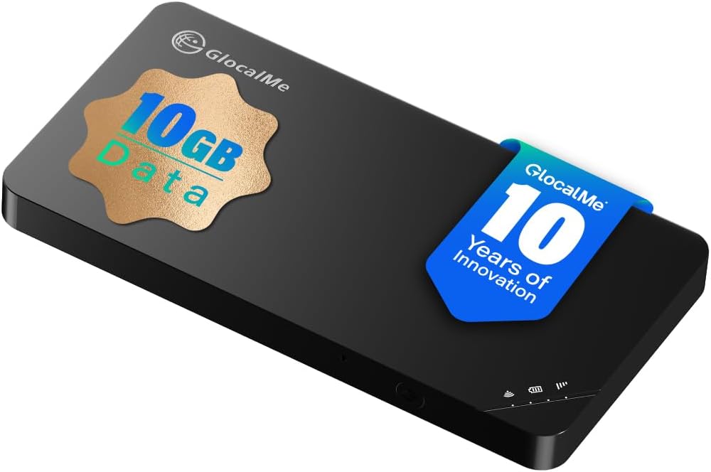 GlocalMe U3 4G LTE Mobile Hotspot, Portable WiFi Hotspot for Travel in 200 Countries, No SIM Card Needed, 10 Connected Devices and Global 1GB Data 90 Days, Pocket WiFi Hotspot Device (U3 Black)