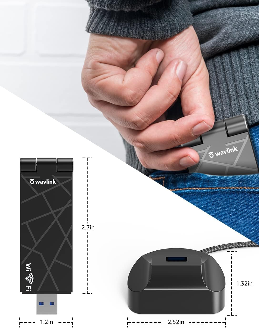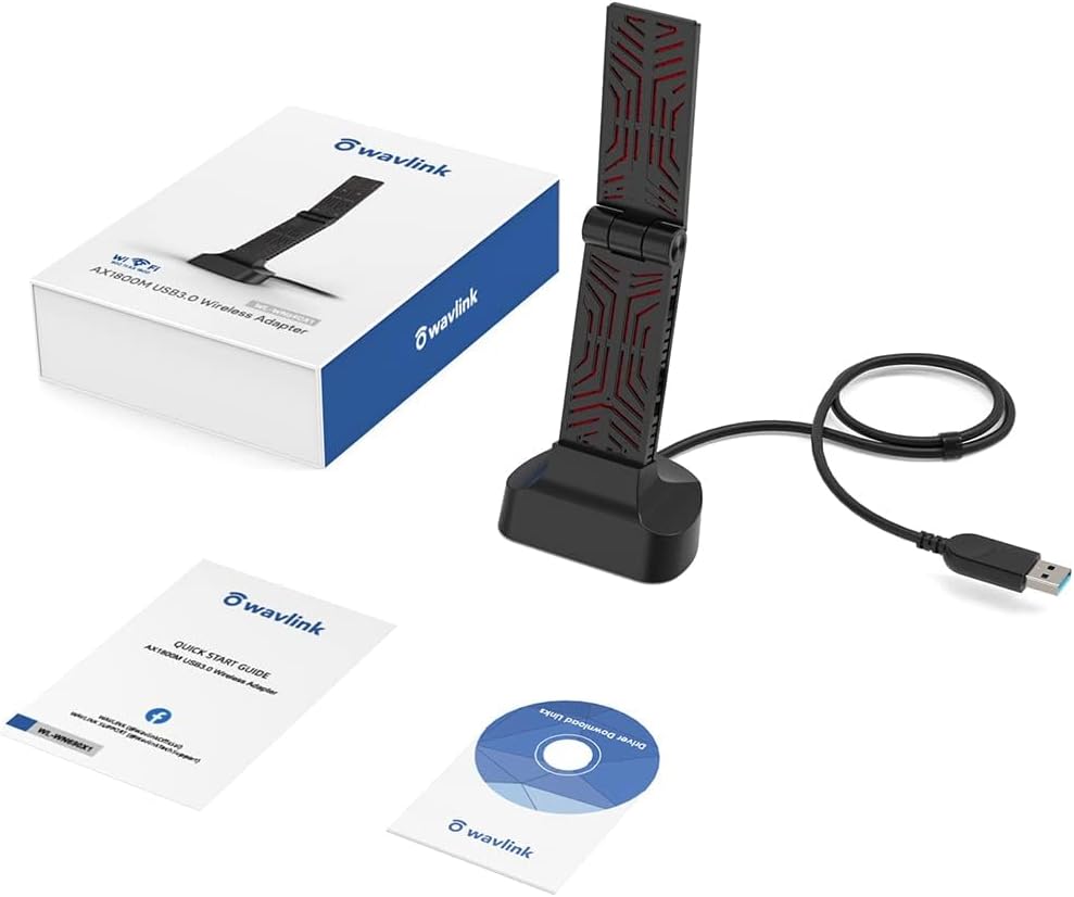 Wavlink AX1800 USB WiFi Adapter, USB 3.0 Dual Band High Gain Antenna 2.4GHz/ 5GHz WiFi Adapter for Desktop PC, WiFi 6 (802.11ax) Adapter for Windows 11/10/7, Mini Travel Size