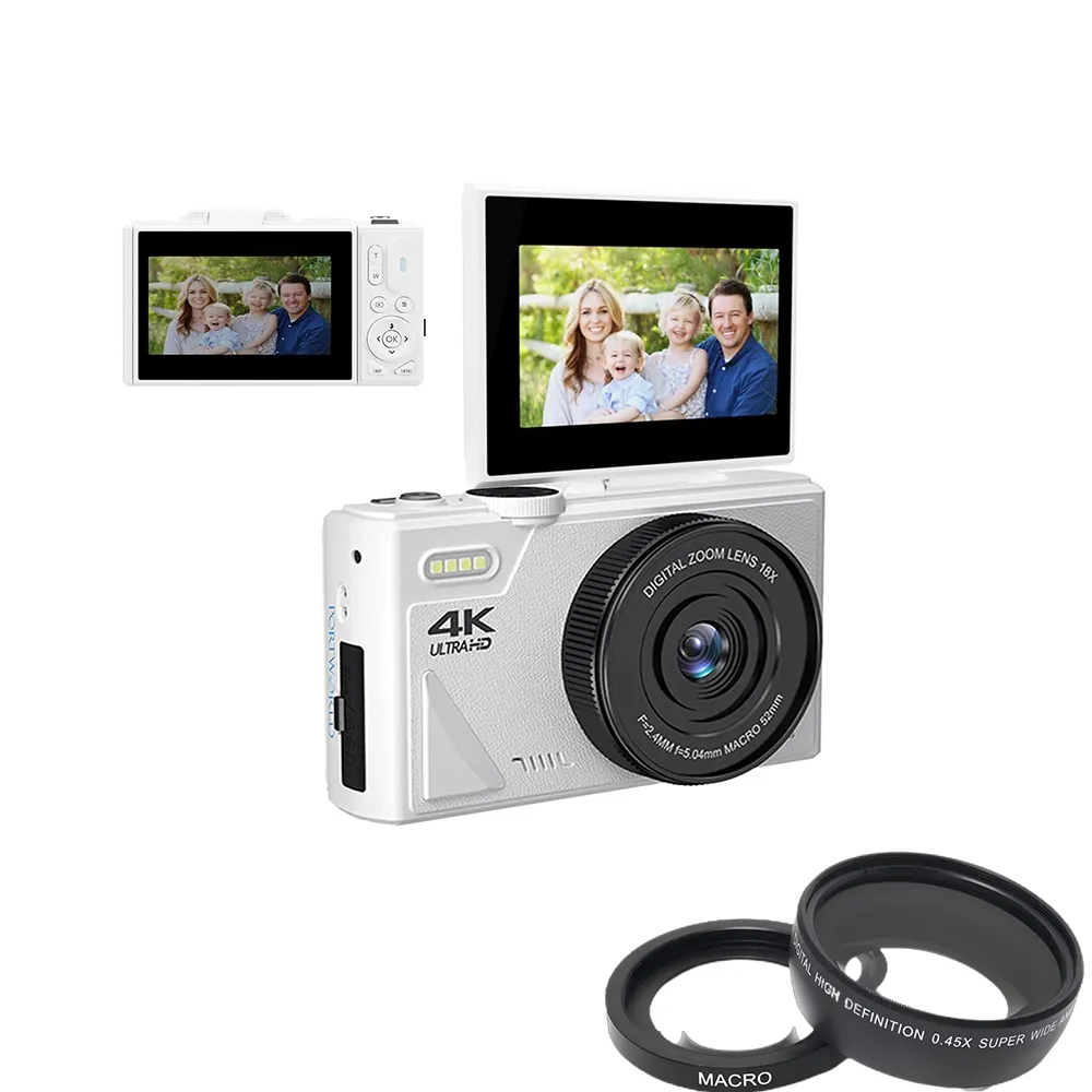 Mirrorless Digital Camera 18X Digital Zoom 4K 64MP High-Definition Vintage Cameras with 180-Degree Rotating Screen Flash WiFi for Vlogging Camcorder Photo Shooting