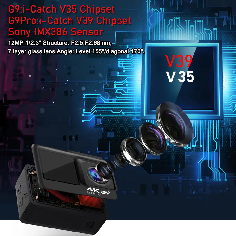 ●CPU: G9: i-catch V35 G9Pro: i-catch V35 4K 60fps.Sensor: IMX386 12MP 1/2.3 ".