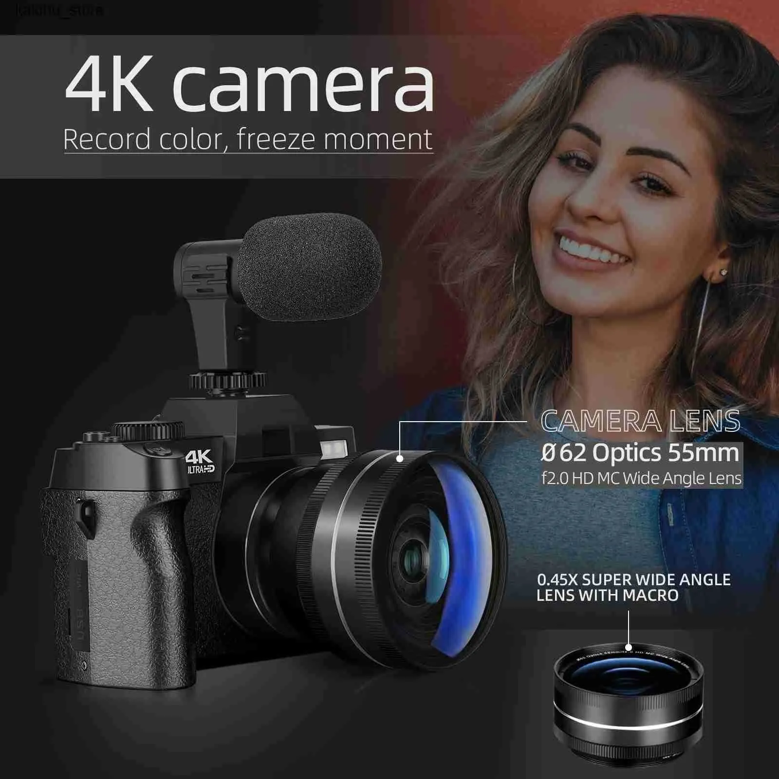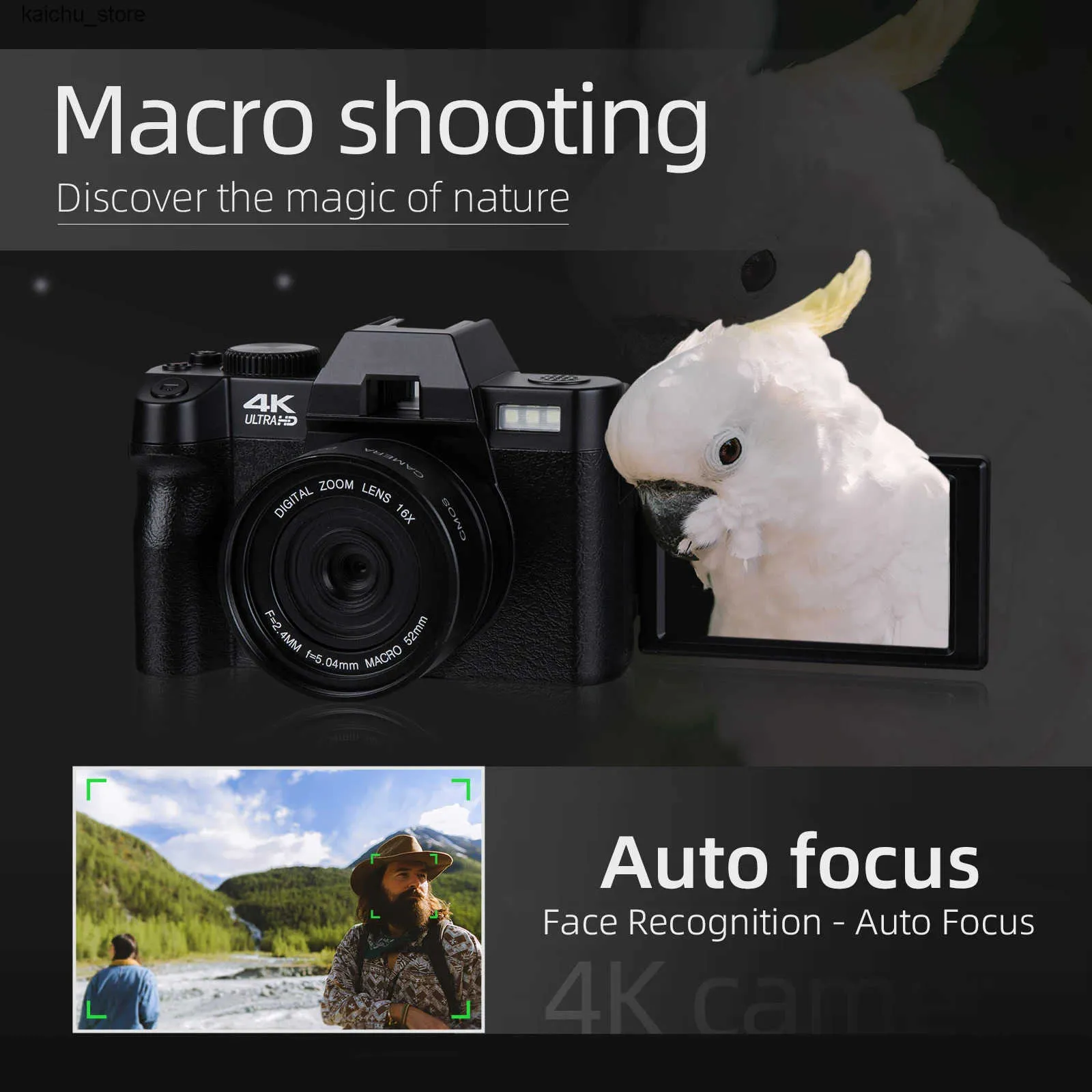 ��【Digital Camera with Wide Angle Lens & Macro Lens】The 4K camera is equipped with a professional detachable 52mm wide-angle lens and macro lens, which is very suitable for close-up shooting of large scenes and small objects. The wide-angle lens can expand the angle of view to 120 degrees to provide a wider range of views. With the macro lens, you can take close-up photos with clear details such as flowers. (Note: To take a close shot, you need to remove the wide-angle lens to avoid being unable to focus)