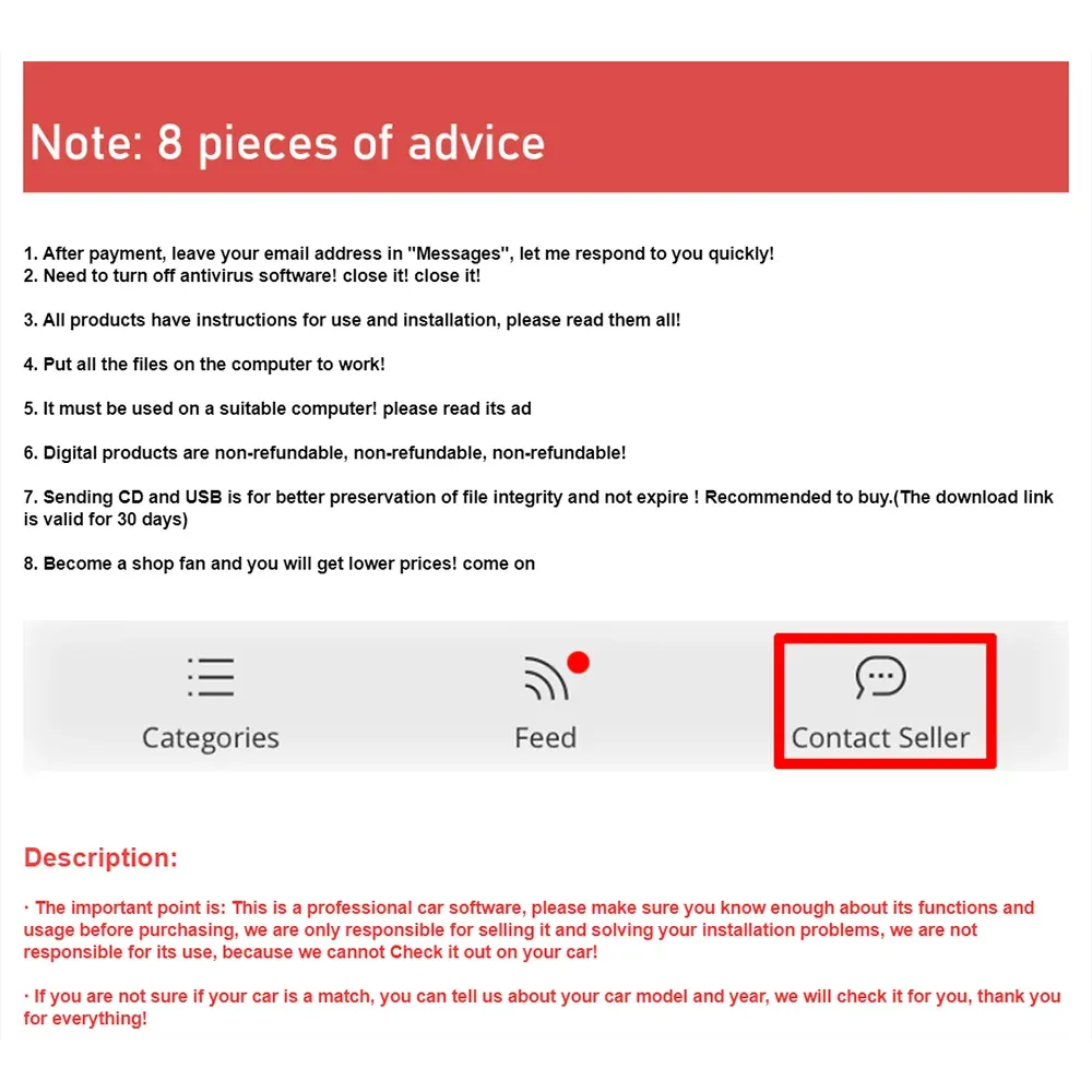 · The important point is: This is a professional car software, please make sure you know enough about its functions and usage before purchasing, we are only responsible for selling it and solving your installation problems, we are not responsible for its use, because we cannot Check it out on your car!
