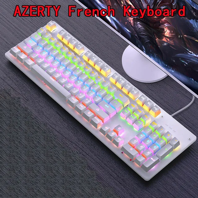 Gaming Mechanical Keyboard punk Round Retro Keycap Backlit USB Wired Computer Peripherals AZERTY Layout for Desktop Laptop