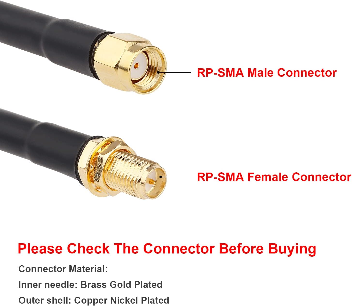 • [Product Characteristic] - Connector: RP-SMA Male to RP-SMA Female. Cable Type: RG58 (KMR195) Cable. Impedance: 50 Ohm. Length: 6 Feet.