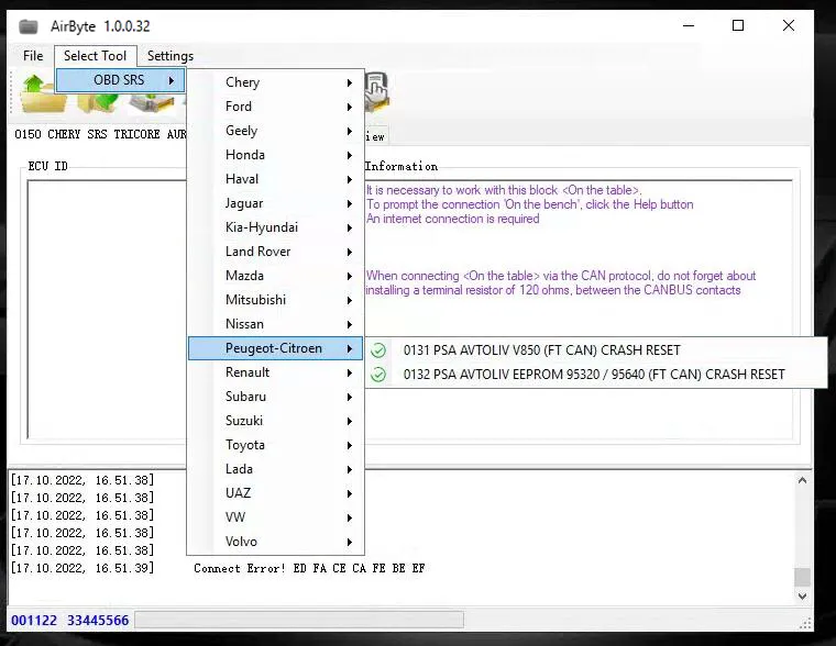 AirByte J2534 FULL 1.0.0.32 Software Cleaning Crash Data in SRS ECUs via J2534 adapter