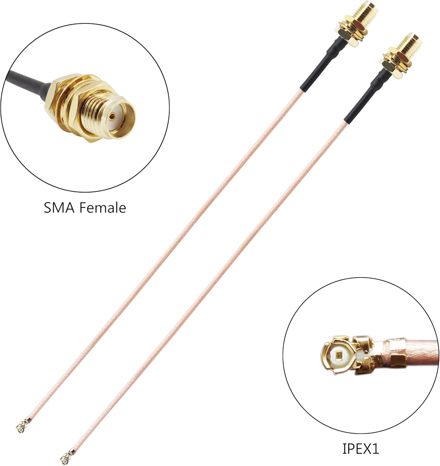 • Package Includes: 2 x SMA Female to UFL/IPEX1/U.FL1 coaxial cable (Connector 1: SMA Female, Connector 2: UFL connector, Cable type: 8 inches RG178 coax cable)