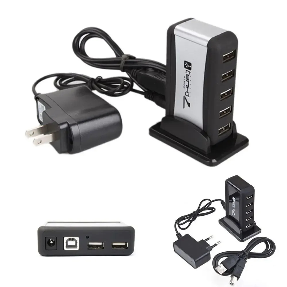 7 Port Portable Stand Dock Adapter 7 Port Hub Usb Cable with AC Power USB 2.0 HUB USB Charger Computer Peripherals